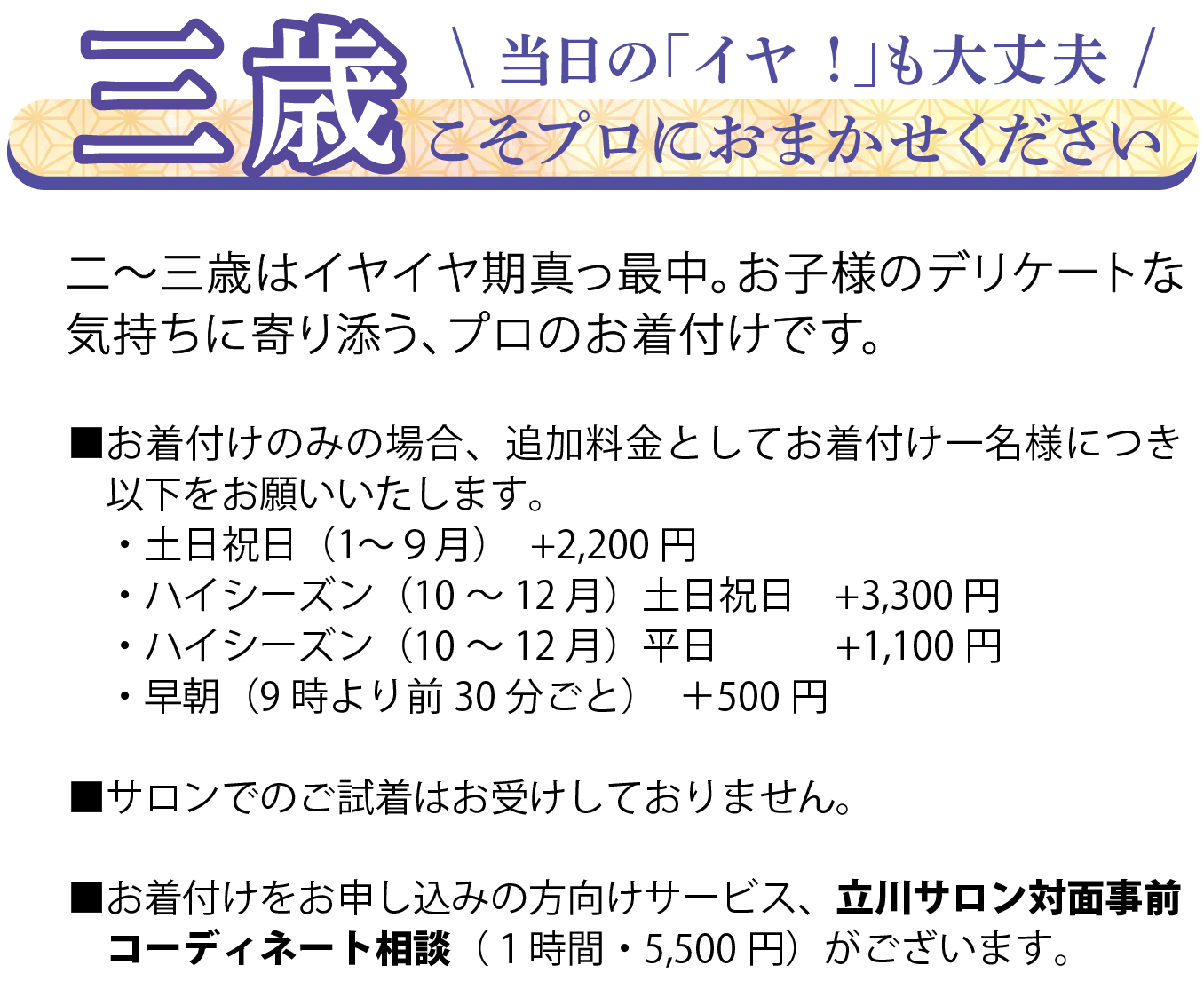 ※お着付けのみの場合、追加料金としてお着付け一名様につき以下をお願いいたします。